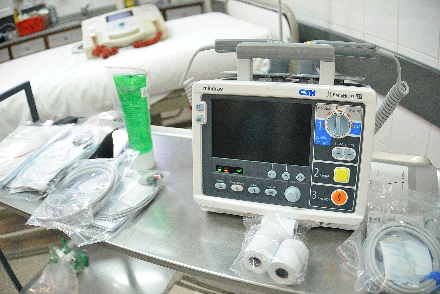 Se trata de un cardio desfibrilador con marcapasos, un instrumental sofisticado que el hospital no tenía. El Dr. Marcelo Parada, Jefe de Emergencias explicó que el hospital cuenta con varios equipos desfibriladores pero sin la función de marcapasos, lo que resulta fundamental en el área de emergencias. El mismo no solo revierte las arritmias del paciente sino que suma el marcapaseo externo inmediato, permitiendo en casos de alta complejidad el viaje en ambulancia por derivación con asistencia continua de paciente. Además cuenta un monitor multiparamétrico que indica presión, saturación de oxígeno y otros parámetros vitales que evitan sumar instrumental complementario. “Es un equipo fundamental que salva vidas, expresó el Dr. Parada”. El Hospital más próximo que cuenta con este equipamiento es el de la ciudad de Neuquen.