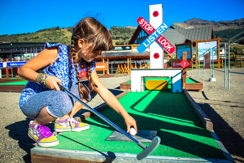 Mini-golf en #Chapelco Verano : concentración, distancia y puntería para los más chicos