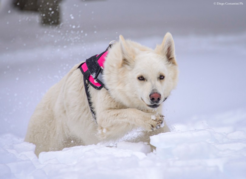 . Las integrantes del staff canino de Bosque de los Huskies, Berna y Arauu, hembras de 17 meses, Pastor Blanco Suizo.