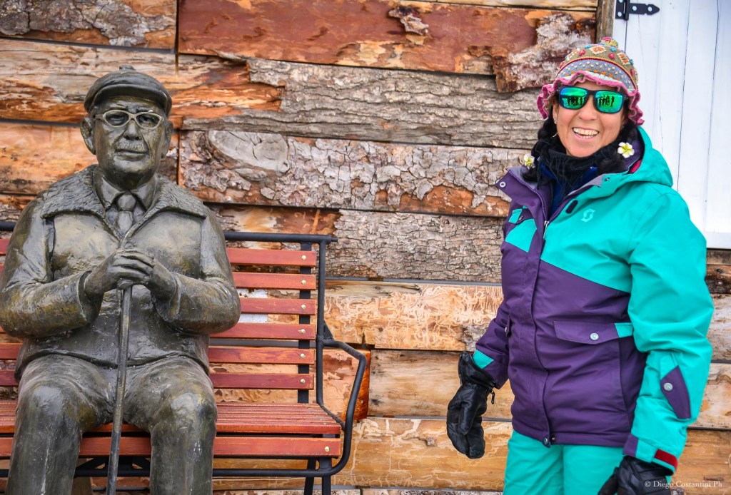 Ante la presencia de la hija menor de Don Américo, Verónica Astete instructora de la Escuela de Esquí Chapelco, se instaló la obra frente al histórico y renovado Refugio Graef, construido e inaugurado en 1948 por un grupo de pioneros, donde se refugiaban durante la noche para esquiar en nieve fresca desde la mañana siguiente. Ubicada en plataforma 1700m en el corazón de Chapelco, la impactante imagen de Américo Astete lo muestra sentado en su silla, con las manos apoyadas en su bastón custodiando el refugio, con la mirada hacia el Volcán Lanín.