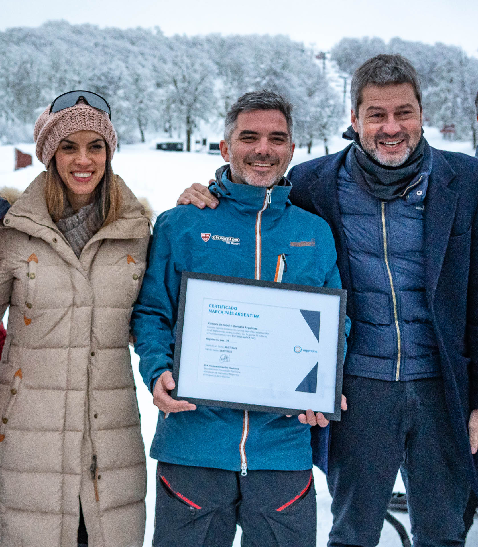 En dicha oportunidad, la Secretaria de Promoción Turística de la Nación Yanina Martinez entregó el «Certificado MARCA PAIS ARGENTINA» al Presidente de la Cámara Argentina de Esquí de Montaña, Juan Pablo Padial, Gerente Comercial de Chapelco Ski Resort. Este Licenciamiento es una herramienta para el crecimiento y el desarrollo, representativa de todos los sectores productivos y de servicios, para promocionar el talento nacional, la cultura y los destinos turísticos.