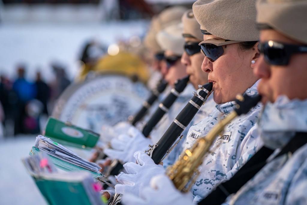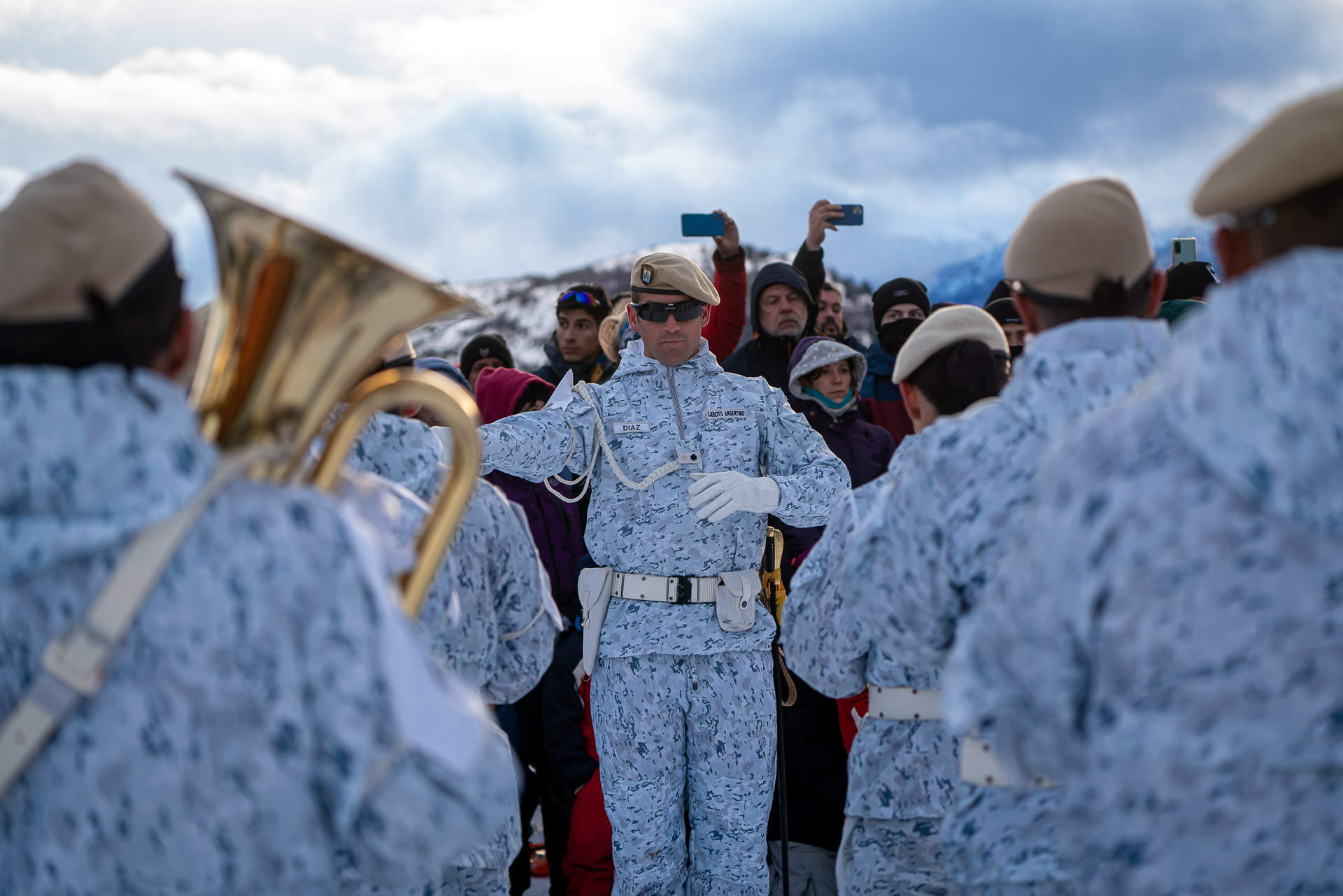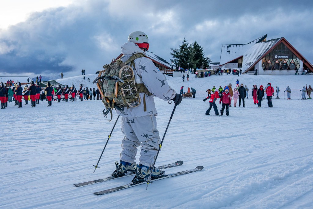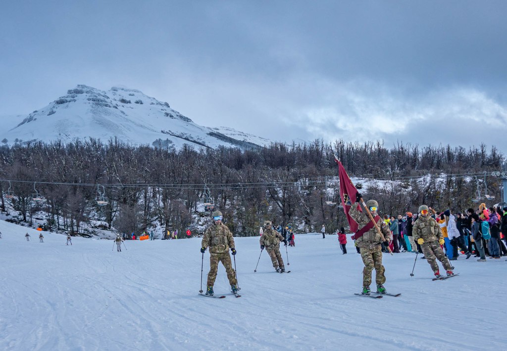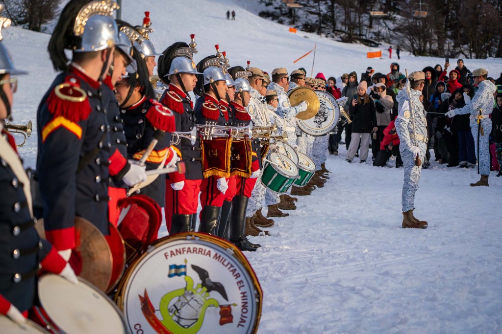 El desfile de las delegaciones se realizó sobre esquíes y fue iniciado por los hombres y mujeres del la Patrulla de Esquiadores de Combate del Regimiento de Infantería de Montaña 26 y por la Patrulla de Esquiadores Andinistas y Exploradores del Regimiento de Caballería de Exploración de Montaña 4 “Coraceros General Lavalle. Cerrando las delegaciones de las fuerzas armadas, desfiló la Patrulla de Rescate de Gendarmería Nacional Argentina.