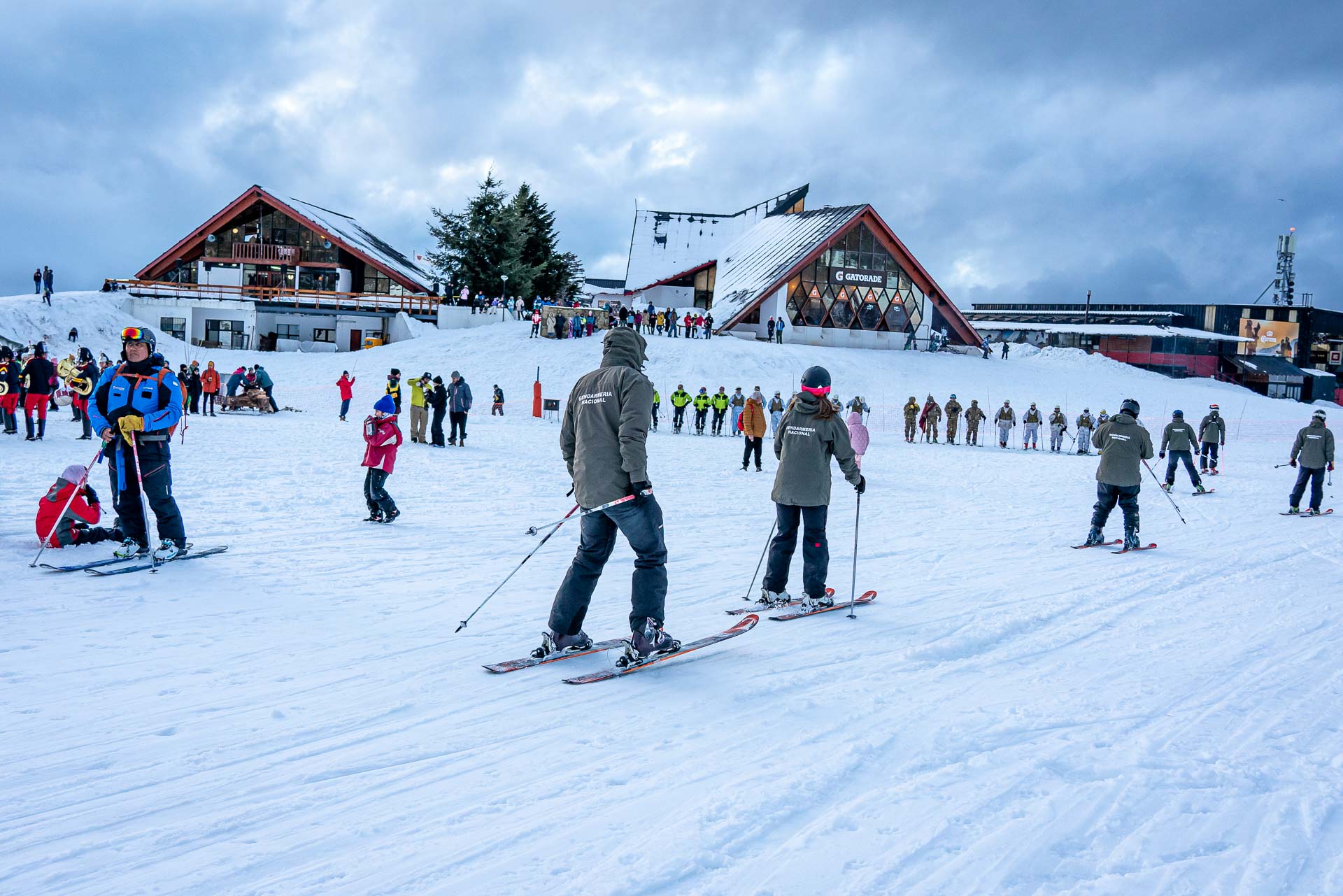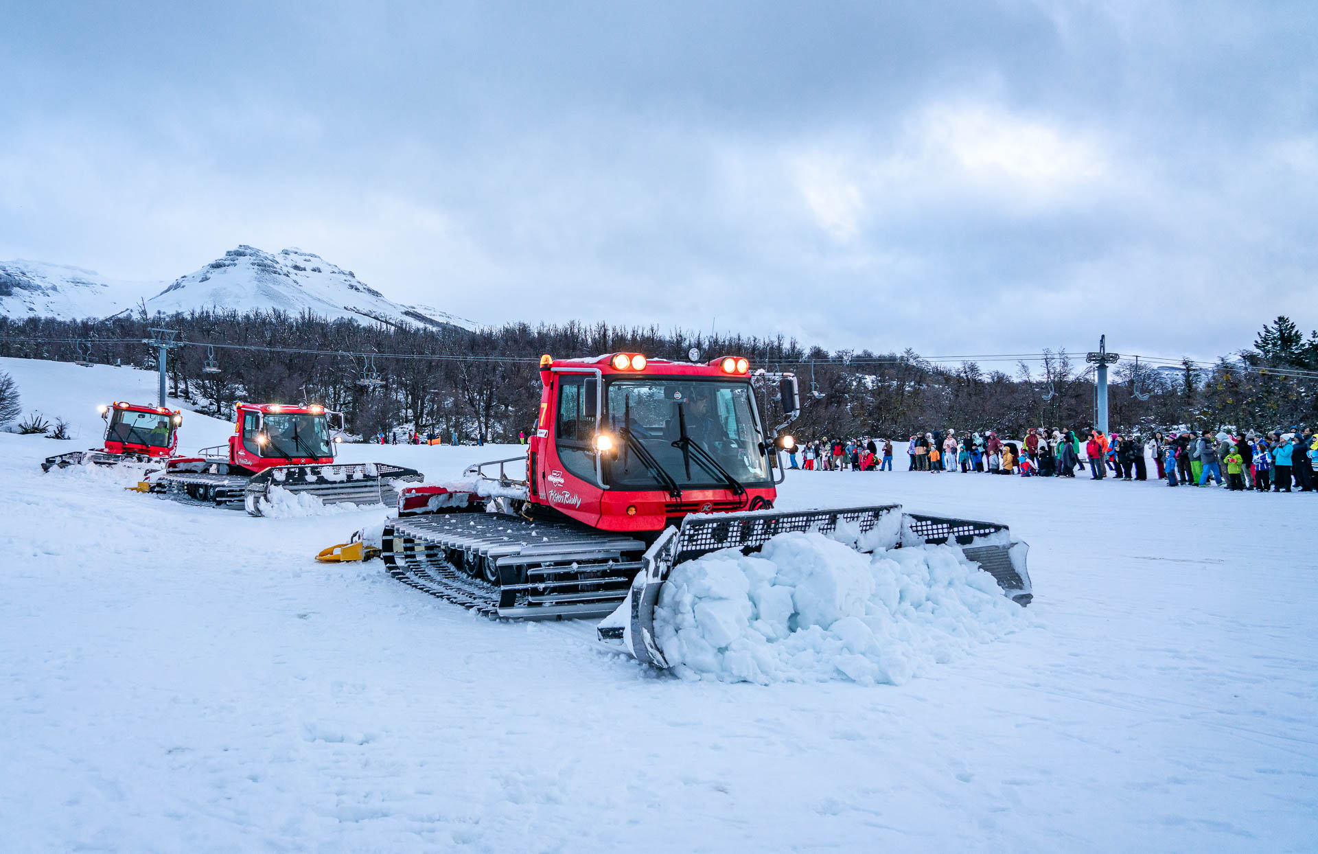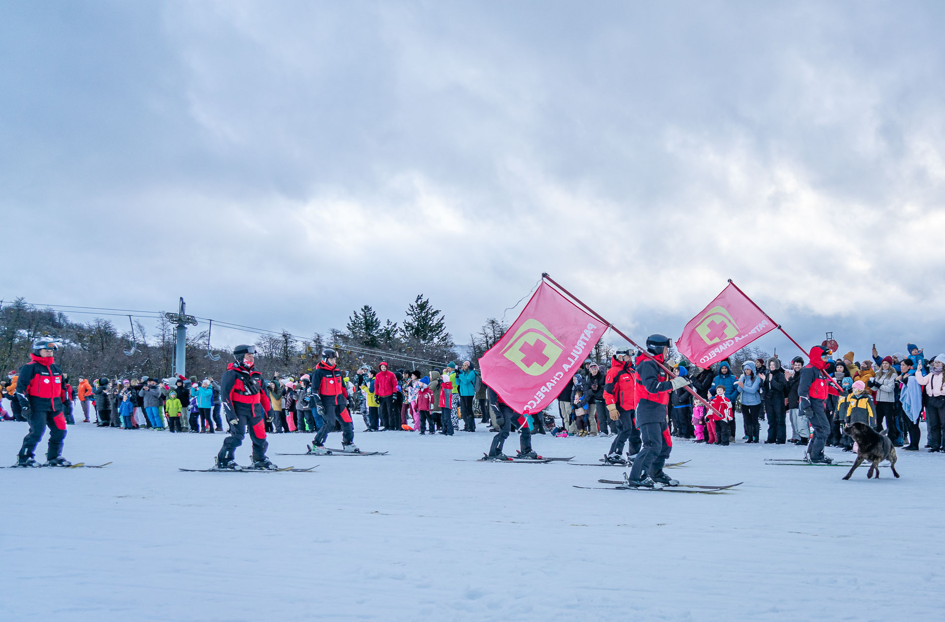 Continuó el desfile con el descenso del Equipo de patrulleros de Chapelco, fácilmente reconocibles por su uniforme rojo y la cruz blanca en la espalda. Lo hicieron en esquíes, motos de nieve, y en barquetas. Seguidamente descendió el personal de Chapelco de sectores como Medios de Elevación, Control y Atención al Cliente. Posteriormente desfiló el Equipo de Pisteros descendiendo con las imponentes máquinas pisapistas, quienes se dedican al arreglo y puesta en condiciones de las pistas, quienes trabajan de día y de noche en todos los sectores de la montaña.